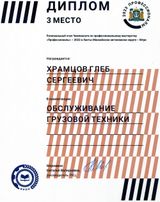 Храмцов Глеб – 3 место по компетенции «Обслуживание грузовой техники» под наставничеством Софьиной Валентины Максимовны