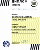 Васянин Дмитрий – 1 место по компетенции «Эксплуатация сельскохозяйственных машин» под наставничеством Зуева Николая Андреевича