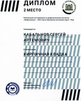 Кабальнов Сергей – 2 место по компетенции «Кирпичная кладка» под наставничеством Ефимова Анатолия Николаевича